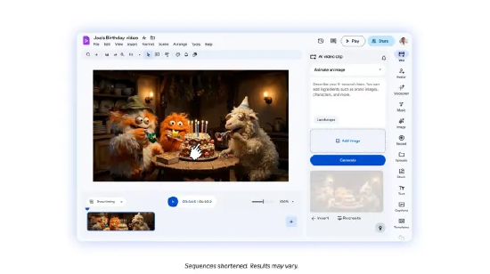 谷歌称,用户可根据视频主题,通过提示词调整人物外貌、更换服饰、搭建全新背景,完成个性化定制。